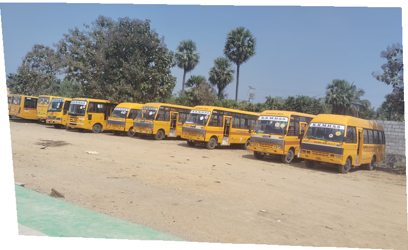 Kalaimagal Kalalaya Matric Higher Secondary School provides a safe and efficient transport system with 27 school buses covering various routes.